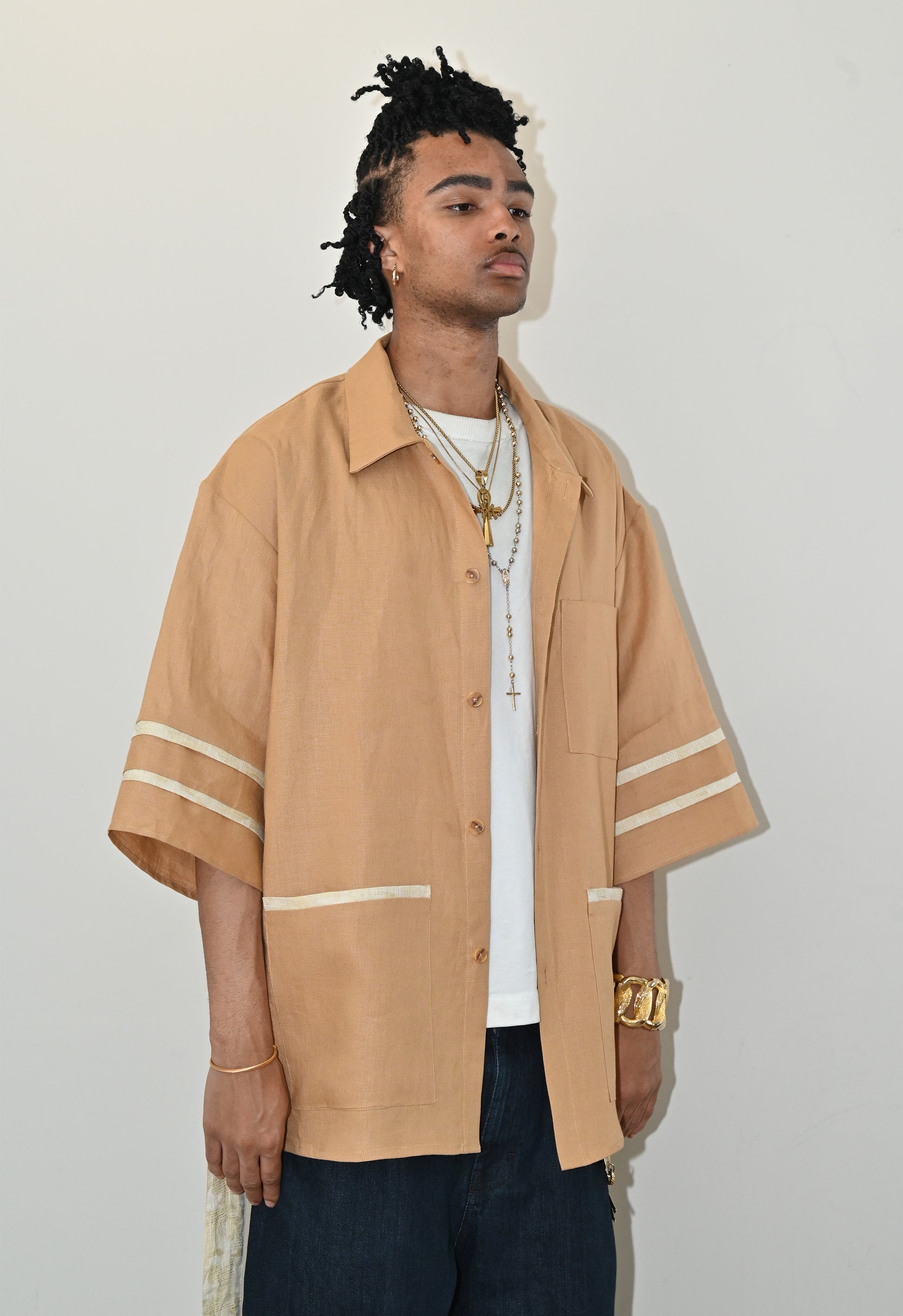 - Camp collar, three front patch pockets